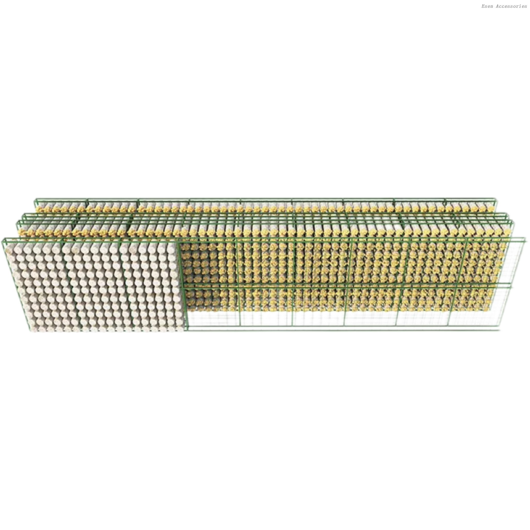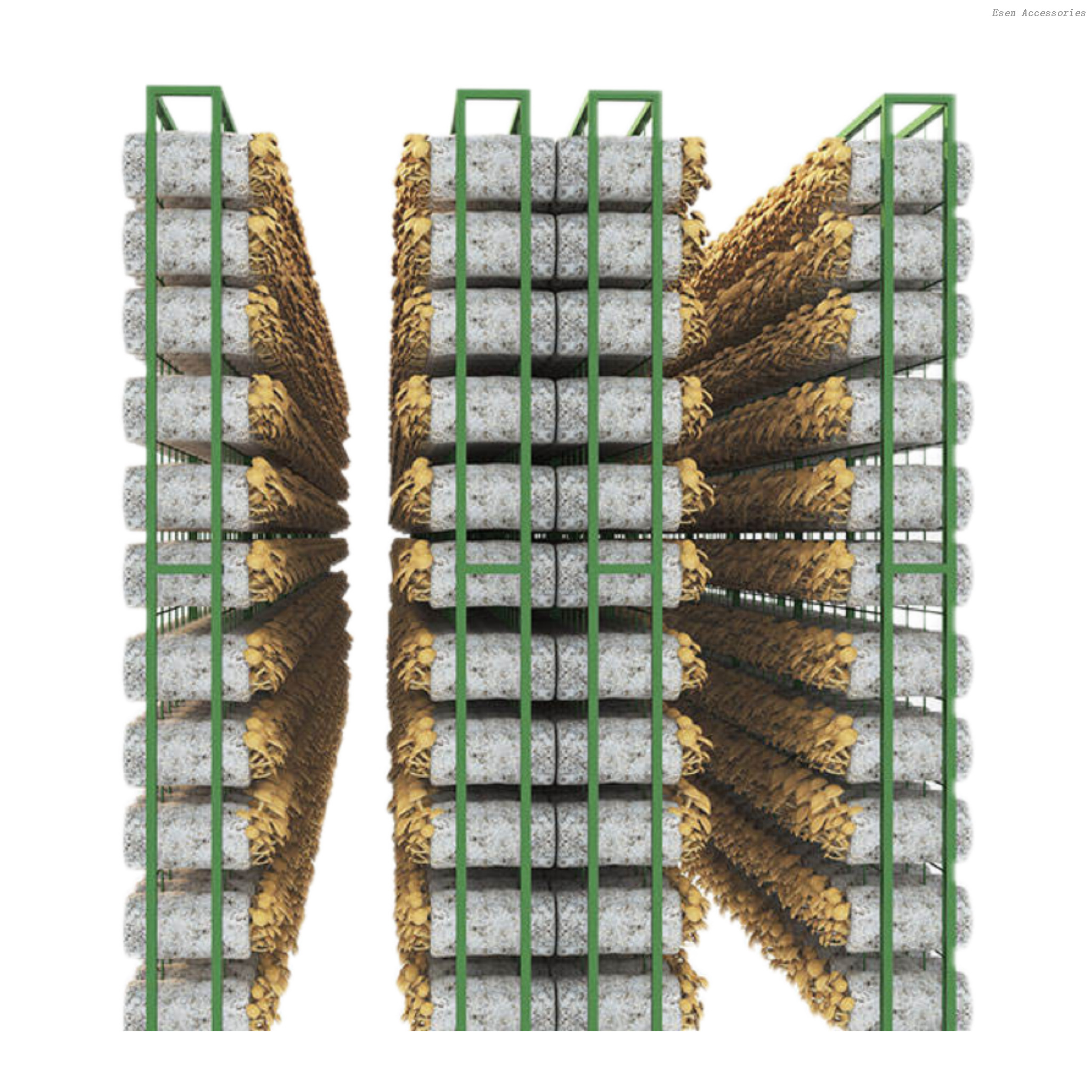 | Estante de cultivo de hongos | Cada fila tiene un tamaño de 10*2,2*0,18 M, 14 capas, 68 bolsas de champiñones por capa, un total de 3808 bolsas de champiñones. |