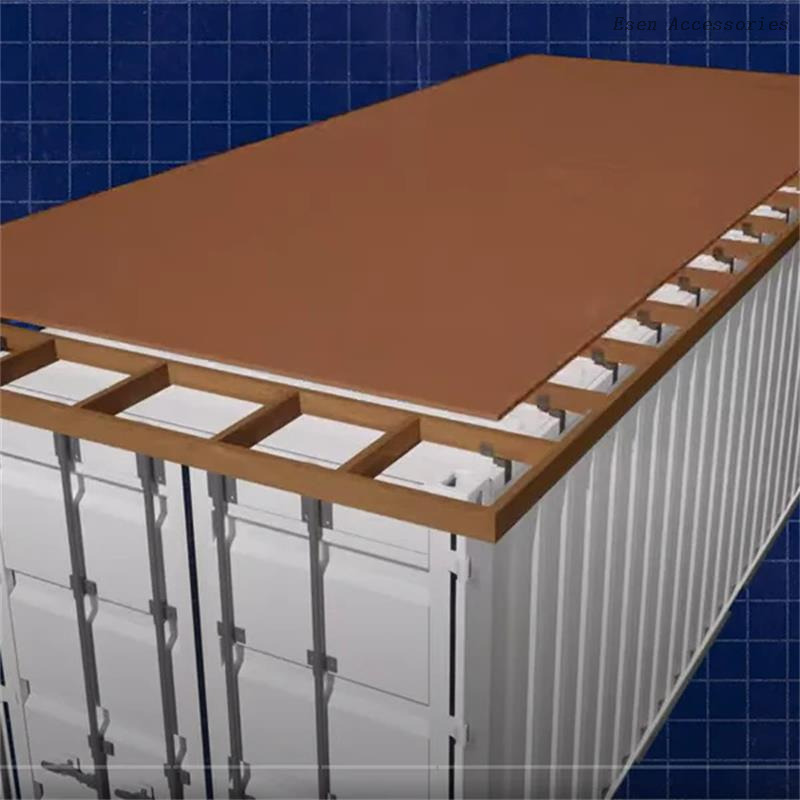 Los soportes para techo de contenedores de envío están diseñados específicamente para construir una estructura de techo de madera liviana encima de un contenedor estándar. Estos soportes brindan una base plana y segura para sujetar vigas de madera, lo que facilita la construcción de un marco de techo plano o inclinado para aislamiento, impermeabilización o creación de espacio adicional.