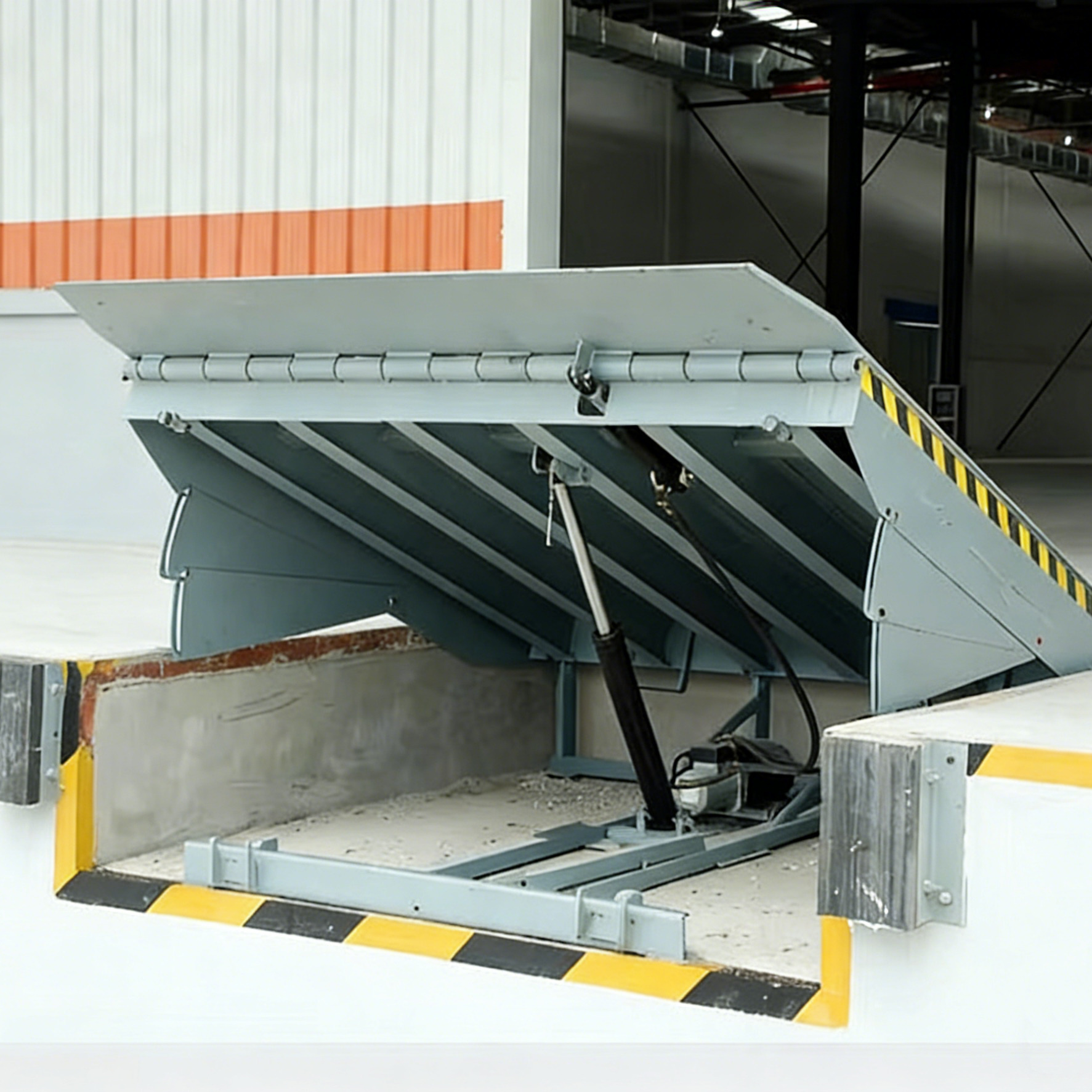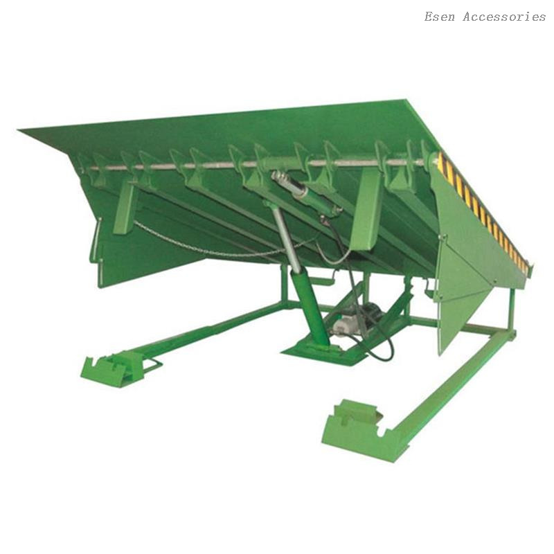 La plataforma de carga y descarga generalmente se instala en el almacén o en la plataforma, sirviendo como puente entre la plataforma y el vehículo de transporte, evitando la diferencia de altura o espacio entre la plataforma y el compartimiento de carga del vehículo de transporte, y permitiendo que los montacargas entren y salgan directamente del vehículo de transporte para cargar y descargar mercancías.